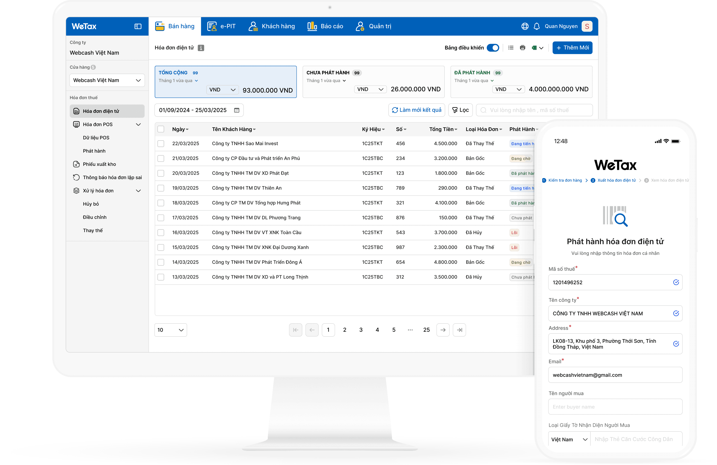WeTax xử lý tốt lượng hóa đơn lớn, đáp ứng đúng yêu cầu của doanh nghiệp sản xuất như chúng tôi. Hệ thống ổn định, giao diện dễ sử dụng và dễ triển khai.
